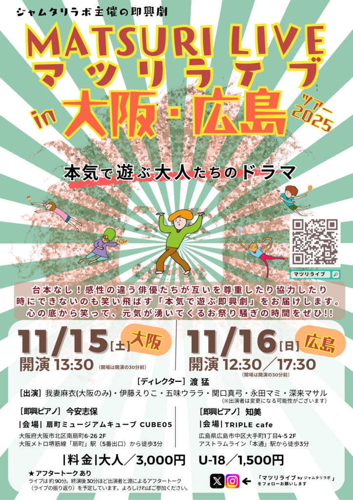 マツリライブ in 大阪・広島ツアー2025開催決定!!11/15(土)は大阪、11/16(日)は広島でやるよ!!