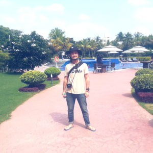 ホテルの庭でご満悦の図。